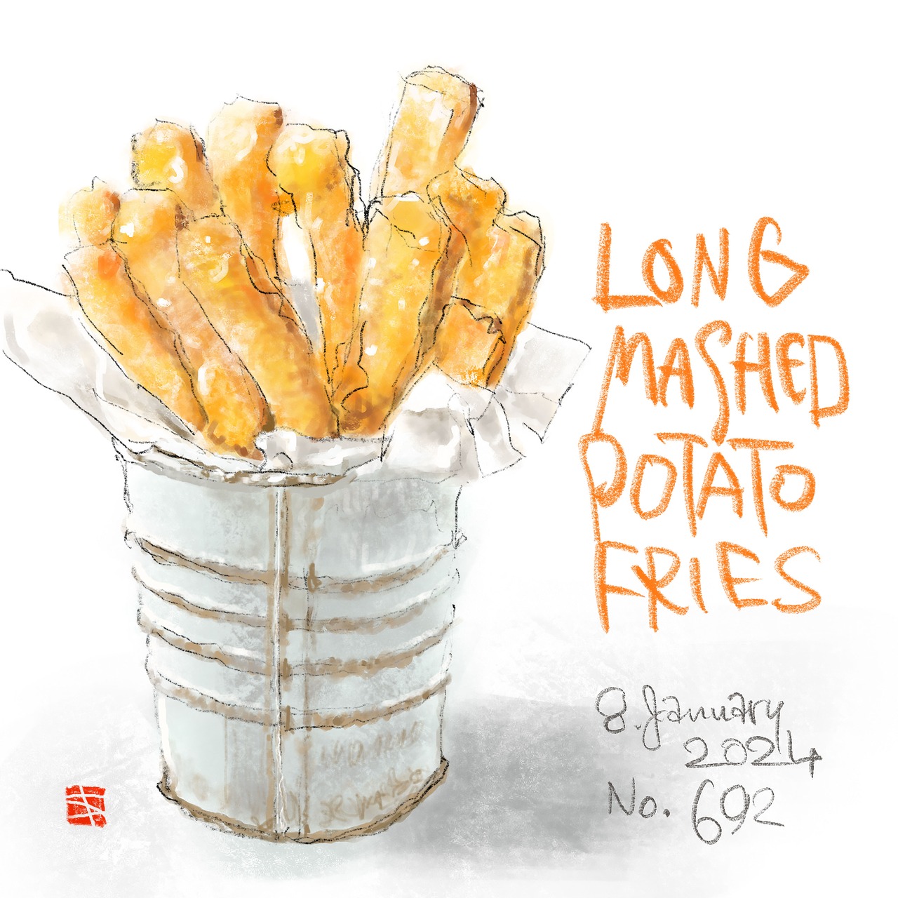LONG-MASHED-POTATO-FRIES 30cm角 アートパネル